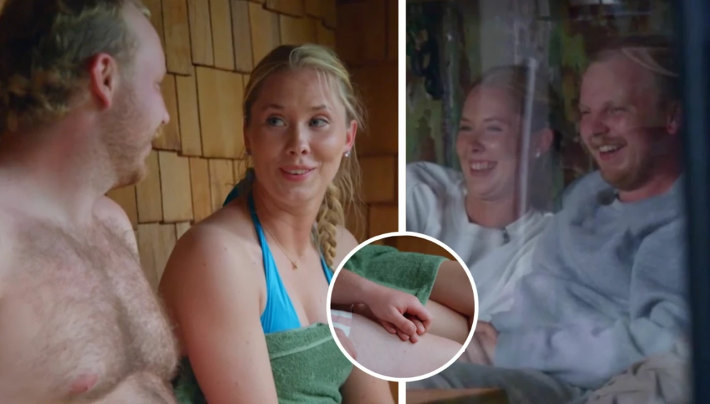 Dejten började med bubbel och samtal, något som följdes upp med bastubad. Så småningom var det läggdags och dags för produktionen att lämna dem ensamma.
