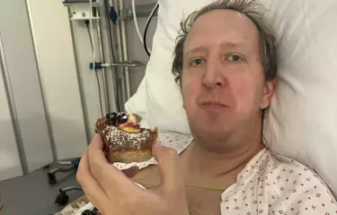 Väl på plats fick komikern en blodpropp i hjärnan. Som tur var han redan inlagd på sjukhus när händelsen tog plats och hade därför proffshjälp nära till hands.