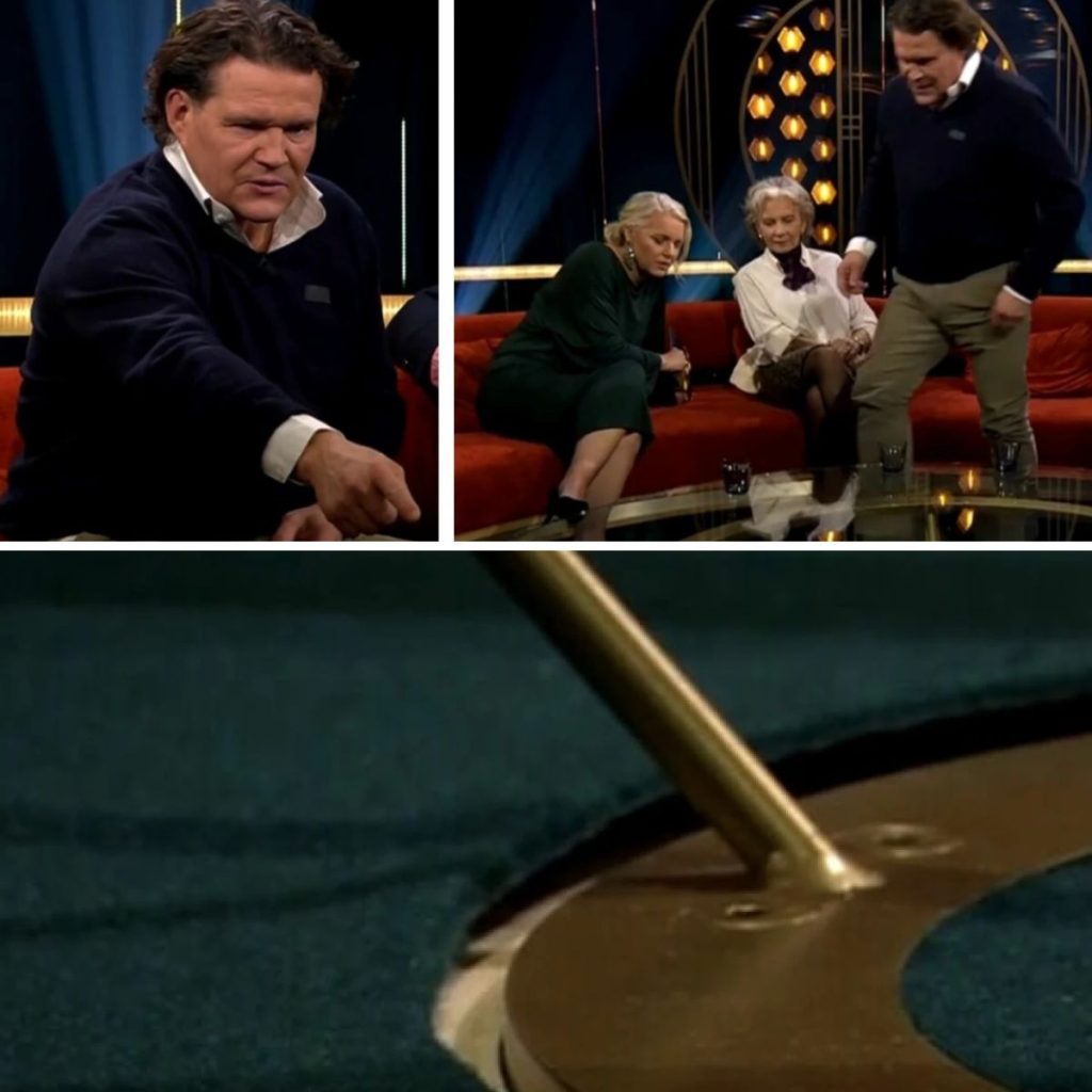 Per har nämligen märkt att foten på bordet i studion inte linjerar helt med mattan.
