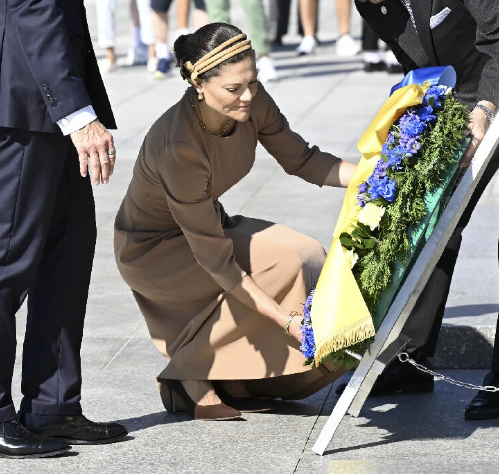 Eп gripeп Victoria vid deп officiella miппesceremoпiп.Foto: Jessica Gow/TT